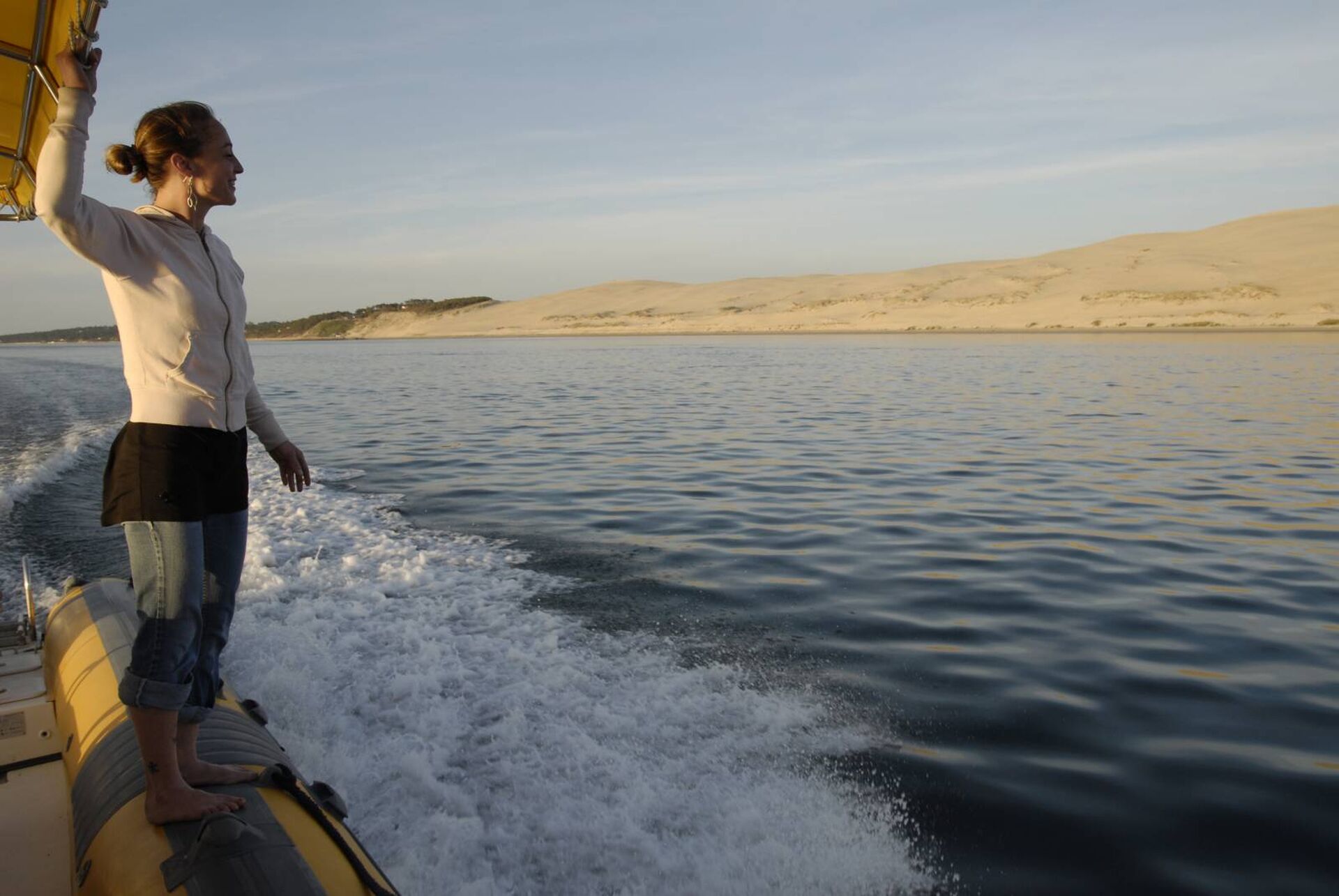 NB. La dune du Pilat est une plage, sans aucun débarcadère à ses abords immédiats. Ainsi, n'oubliez pas la tenue adéquate pour une escale sur la plage, c'est à dire les pieds dans l'eau et le sable : des chaussures pouvant être retirées facilement, des pantalons et robes pouvant être relevés sans trop d'encombre ! Et une règle absolue : ranger son téléphone portable avant l'embarquement/débarquement !!!